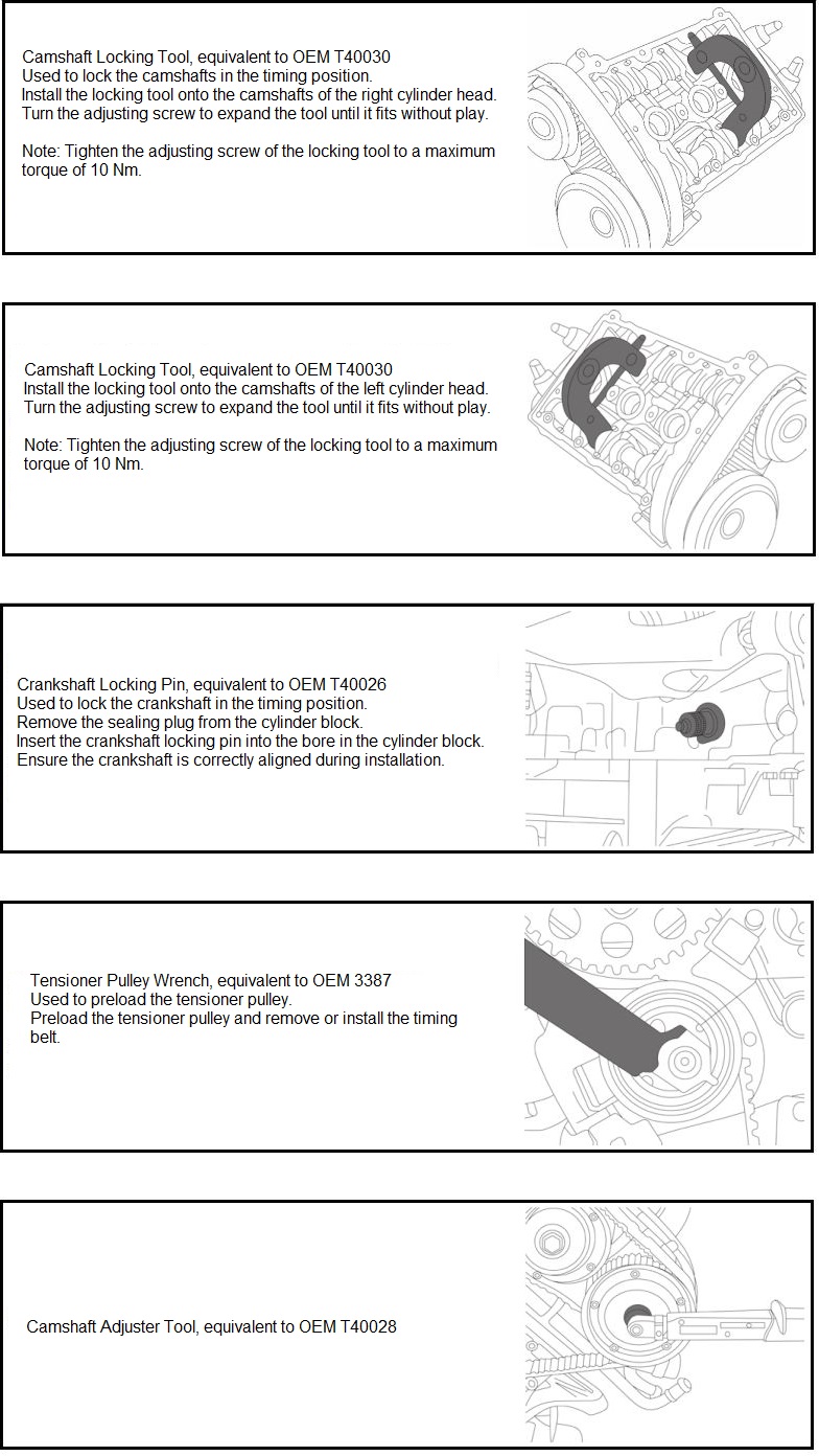 Home Automotive Tools Car Tools Engine Tools Engine Timing Tools VAG Petrol Engine Tools Toolkits Audi 3.0 V6 30V Engine Timing Tool Set – A4, A6, A8