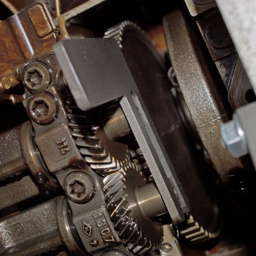 Tool for aligning and locking balance shafts during engine timing, oil pump service, and work on the balance shaft unit in BMW engines.