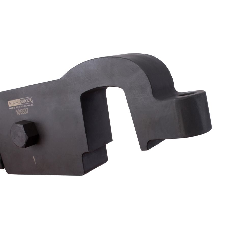 Acest dispozitiv de blocare a arborelui cu came este conceput pentru fixarea arborelui cu came în poziția corectă în timpul lucrărilor de reparație și întreținere. Permite alinierea precisă la înlocuirea lanțului de distribuție și în alte operațiuni care necesită poziționare exactă.