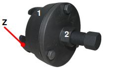 Insert the holding/pulling claws (Z) on the base unit (1) through the slots in the pulley, then rotate them to position behind the ribs of the crankshaft pulley.