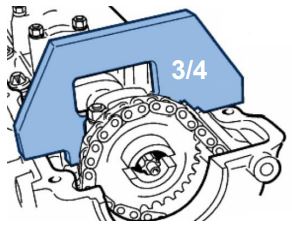 When setting engine timing, the chain pre-tensioning tool is applied to the primary timing chain.