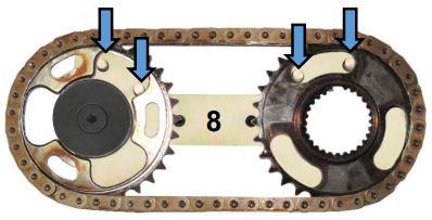 - Timing chain pre-tensioning (primary and secondary chains)