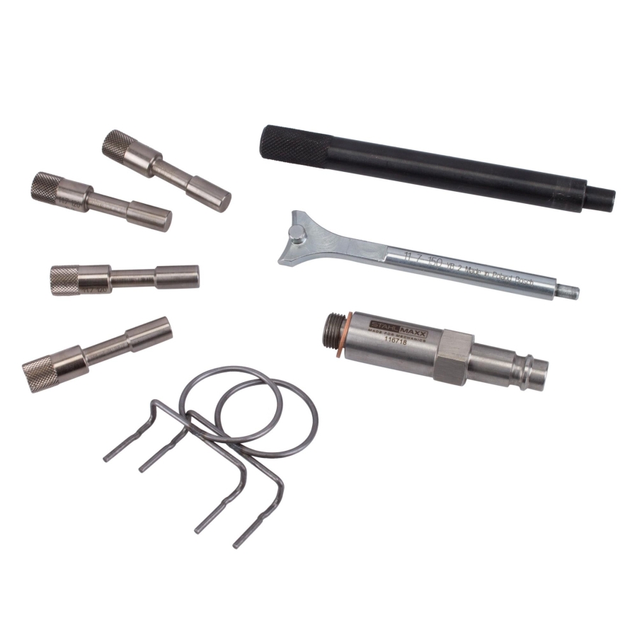 This engine timing tool kit is specifically developed for precise adjustment and locking of the camshaft timing on BMW S62 engines. It is suitable for use on high-performance V8 engines installed in BMW M5 (E39) and BMW Z8 (E52) models.