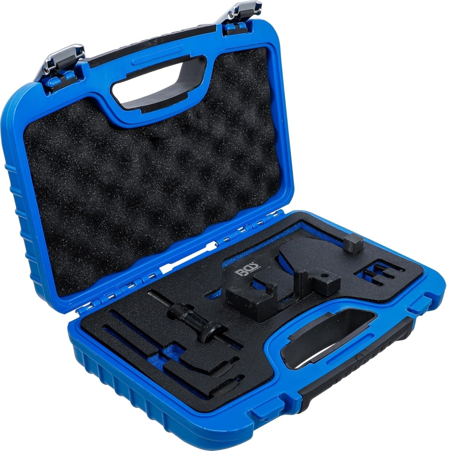 Professional tool kit designed for accurate adjustment and verification of engine timing on BMW petrol engines.