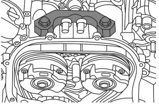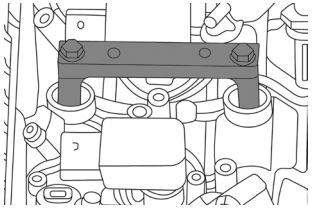 Install the camshaft locking tool and tighten the bolts to 12 Nm.