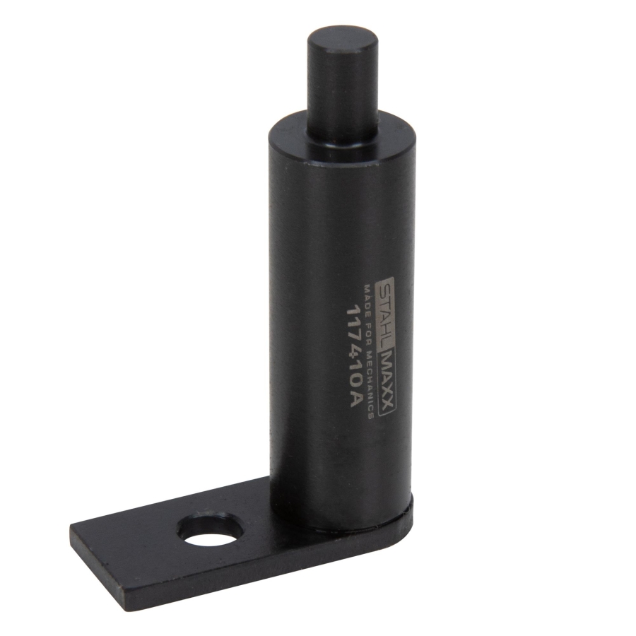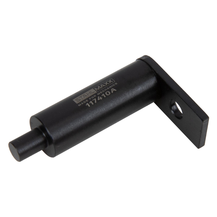 Professional special tool designed for secure locking or releasing of the crankshaft during service and repair work. The tool is fixed in place with a screw, ensuring stable positioning during procedures such as timing belt replacement.