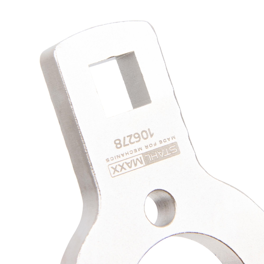 Designed to hold the crankshaft pulley/flange in position during removal and installation. Prevents crankshaft rotation, allowing safe application of high torque when loosening or tightening central bolts.