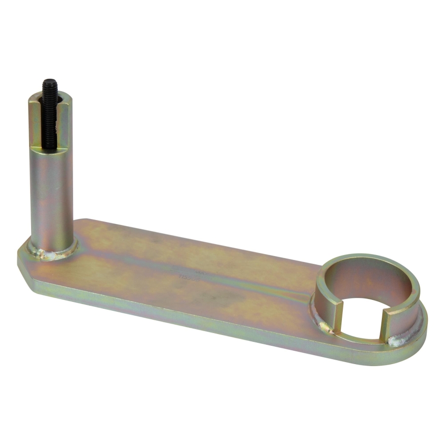The tool locks the crankshaft assembly in position, preventing unwanted rotation while applying high torque. This ensures safe and controlled operation when working on crankshaft pulleys and vibration dampers.