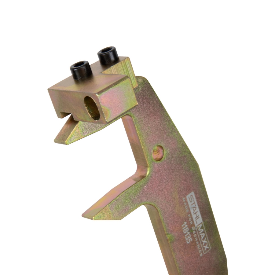 Unealta menține arborele cu came într-o poziție stabilă, prevenind mișcările nedorite în timpul demontării și montării. Asigură reglajul corect al distribuției și siguranța lucrărilor.