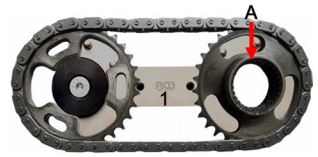 - Ensure correct positioning of the tooth gap (A) and install the timing chain