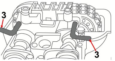 On engines with four camshafts and larger displacement, the locking pins are inserted through corresponding holes on the rear side of the valve cover into the holes of the camshaft gears.