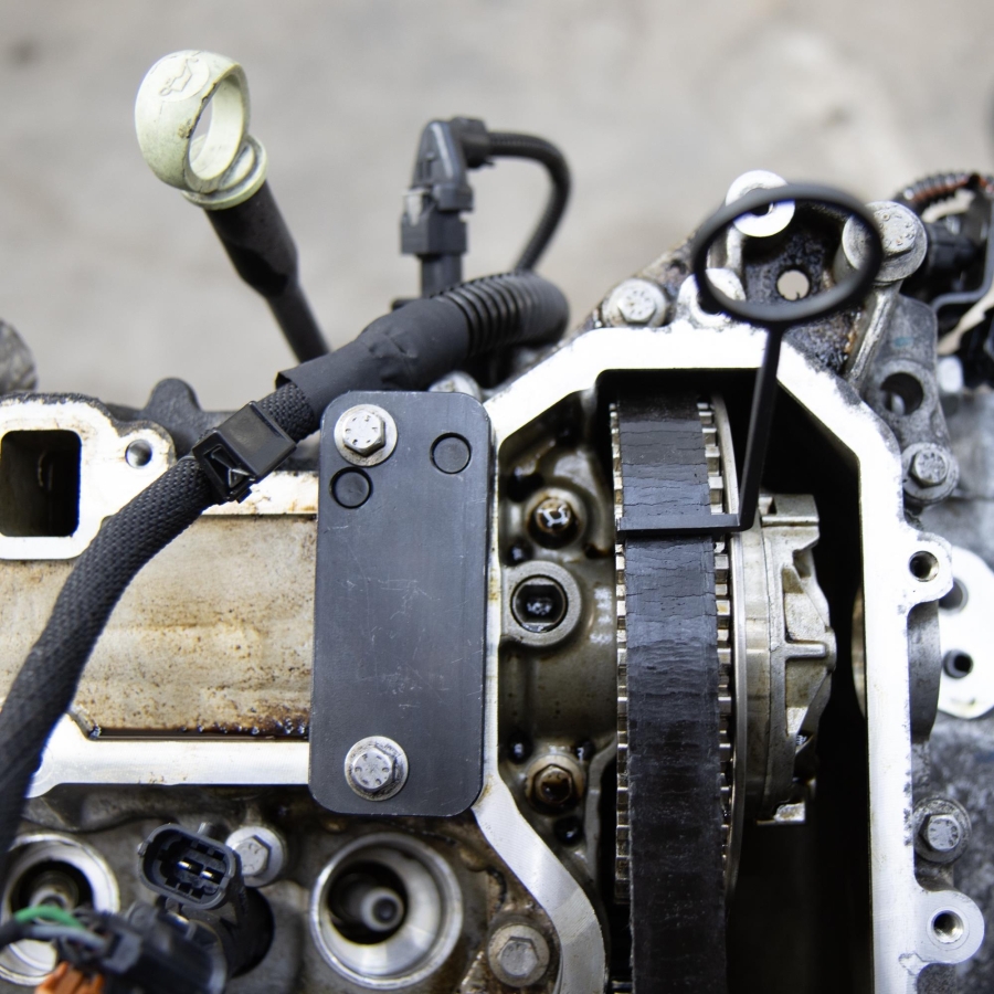 - Camshaft adjusters are visually similar (marked “IN” and “EX”) – caution is required to avoid incorrect installation
