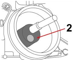 Montați unealta de rotire a arborelui cotit (2) pe șurubul fuliei.