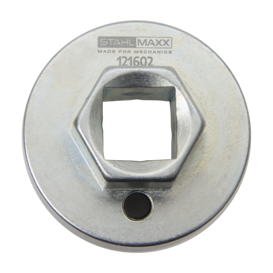 This special socket is designed for rotating camshafts on Mercedes-Benz engines equipped with CAMTRONIC systems. It is used during timing adjustment procedures to correctly position the camshaft before locking.