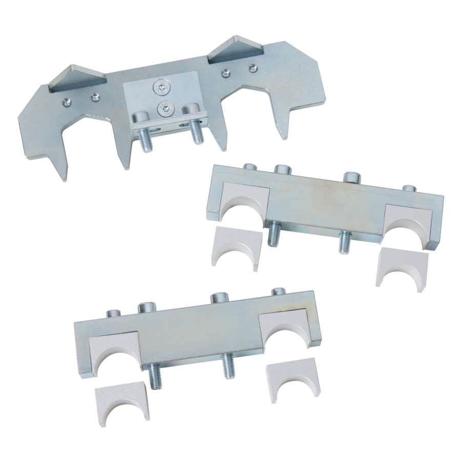 The set includes two adapter pieces which are centered on the camshaft bridge, allowing precise positioning of the camshaft sensor wheels.