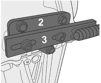 Fixați ansamblul de scule, format din adaptorul special (3) și placa adaptor (2), pe partea laterală a blocului motor.