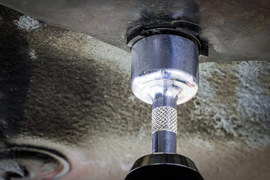 This professional spring washer tool for VAG and Ford vehicles is specifically engineered for quick, safe, and damage-free removal and installation of lock washers and star washers. It is particularly suited for applications involving underbody panels, heat shields, and similar vehicle components.