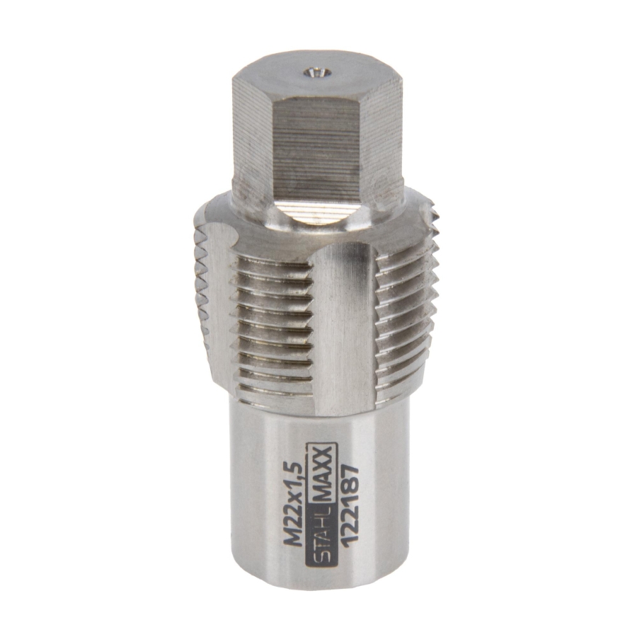 High-performance M22x1.5 thread tap designed for cleaning, repairing, and rethreading threads in NOx sensors, lambda sensors, catalytic converters, and particulate filters. Made of HSS-E with Co5 cobalt alloy for maximum durability and precision.
