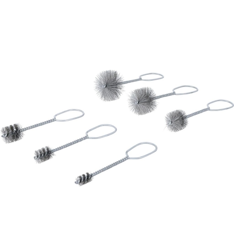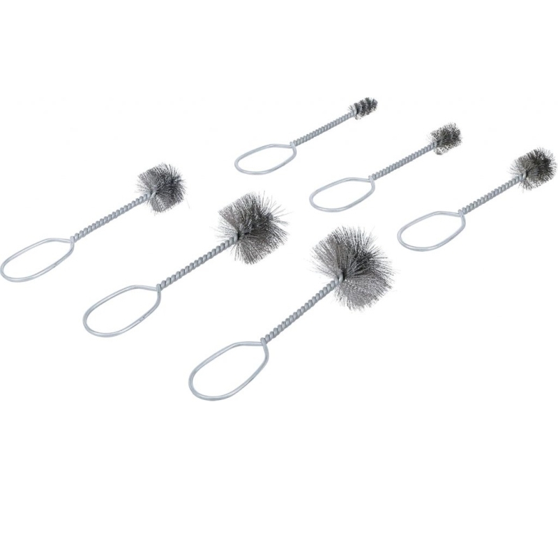 This stainless steel brush set is designed for effective manual cleaning, maintenance, and surface preparation in automotive, industrial, and plumbing applications. The six brushes vary in diameter, enabling access to tight and hard-to-reach areas, including pipes, grids, couplings, engine parts, and cylinders.