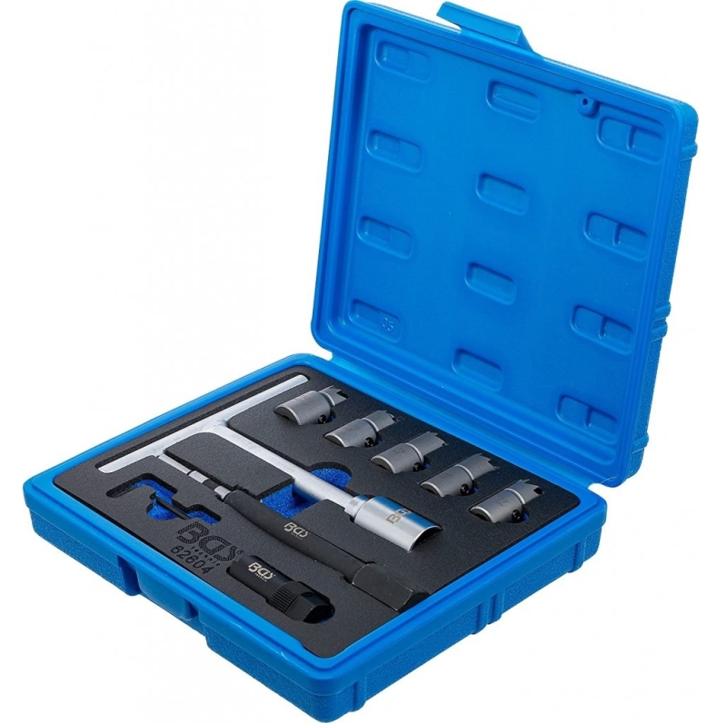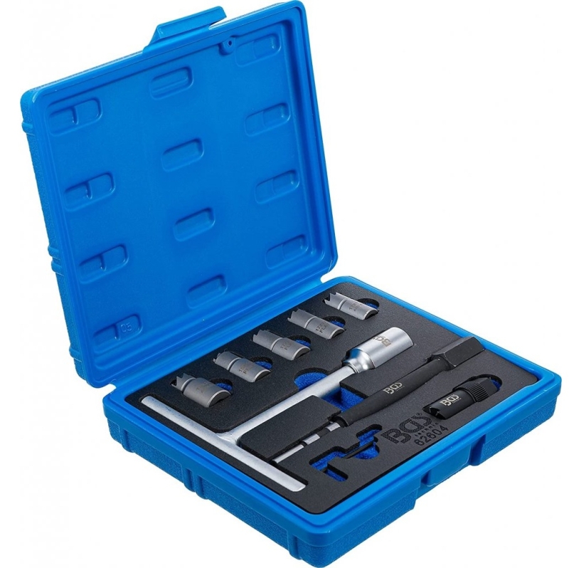 The set is made of high-quality HSS steel for long-lasting durability and precise cutting. It is compatible with many common vehicles and injector systems, including Mercedes-Benz, BMW, FIAT, IVECO, as well as Bosch, Delphi, PSA, and Renault injectors.
