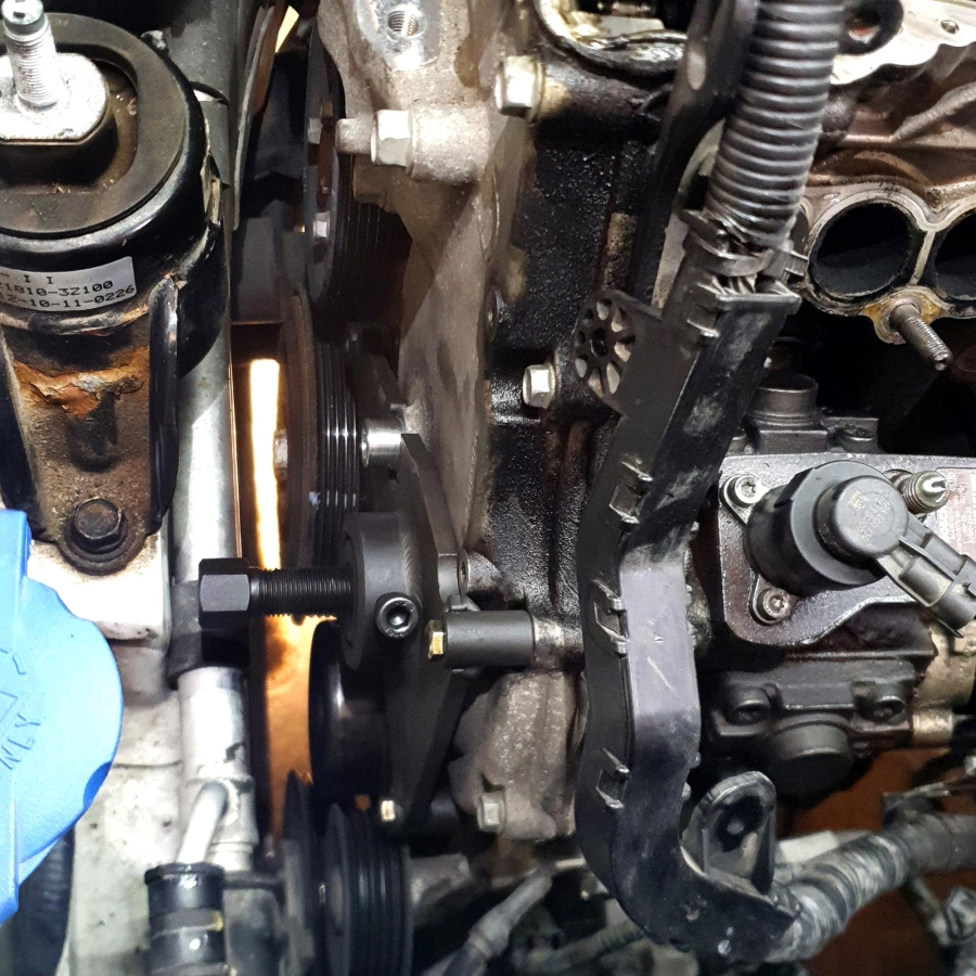 Special tool required to safely remove the high-pressure fuel pump and gear when replacing or removing the timing chain on Hyundai and Kia diesel engines. Professional service is not possible without this tool.