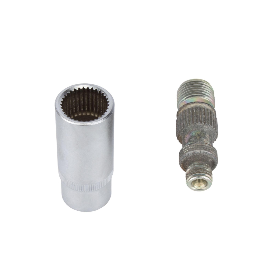 This multi-tooth sleeve is designed for secure and efficient removal and installation of pressure valve holders on Mercedes MRSF-ERE injection pumps.