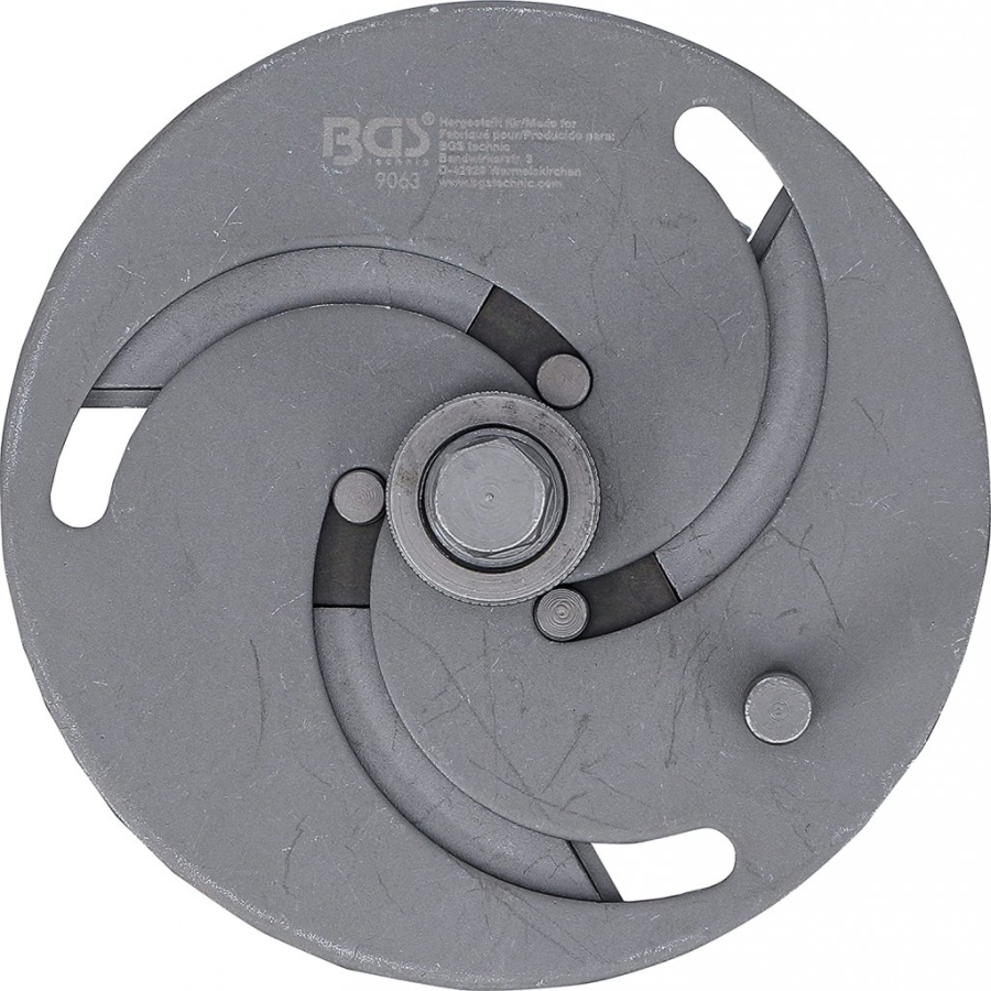 Special tool designed for loosening and tightening the retaining ring of fuel tank sender units. The adjustable design covers a diameter range from 89 to 170 mm, allowing use on various fuel tank systems.
