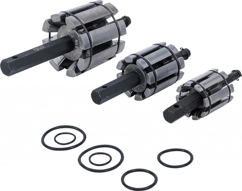 Setul include trei expandori care acoperă un interval larg de dimensiuni, fiind potrivit pentru majoritatea sistemelor standard utilizate la autoturisme, autoutilitare și vehicule comerciale ușoare. Construcția din oțel călit garantează durabilitate ridicată și utilizare intensivă în atelier.