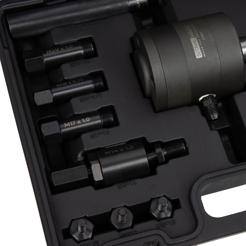 Kitul include un set complet de adaptoare filetate compatibile cu majoritatea injectoarelor pentru autoturisme și autoutilitare, oferind o soluție universală și eficientă din punct de vedere al costurilor.