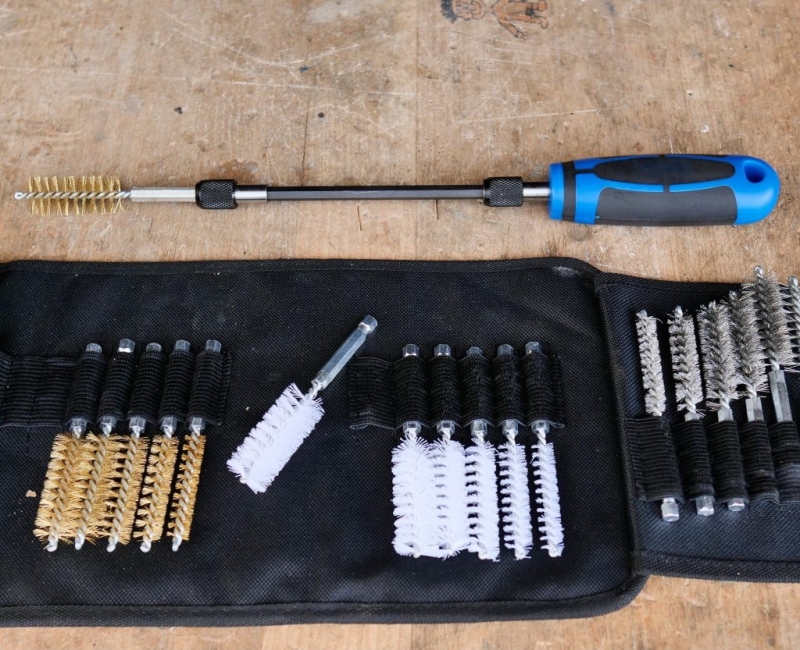 Trei tipuri de perii pentru materiale și sarcini diferite (alamă, nylon, oțel inoxidabil)