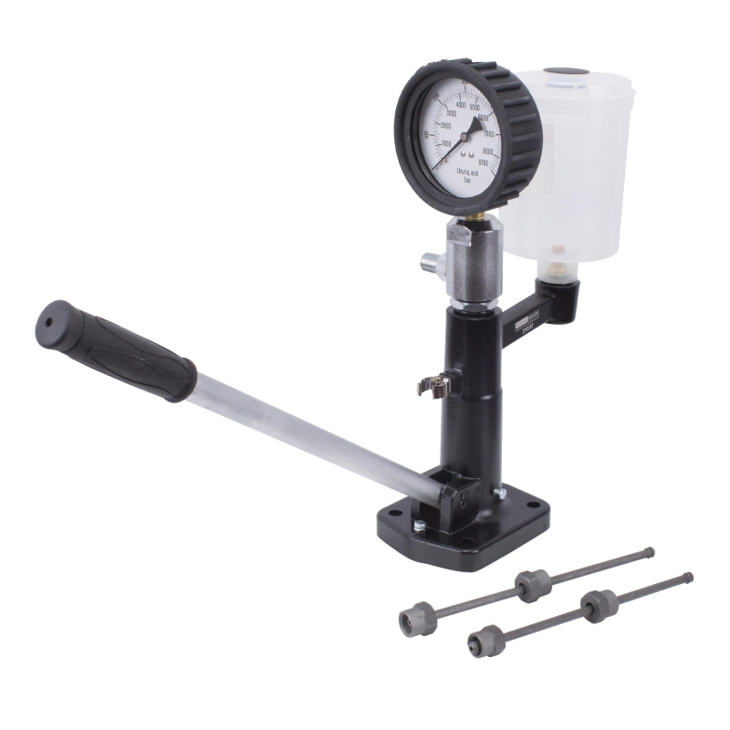Tester robust și fiabil pentru injectoare diesel, proiectat pentru utilizare zilnică în ateliere auto profesionale. Permite diagnosticarea rapidă și precisă a presiunii de deschidere, pulverizării, etanșeității și performanței injectorului.