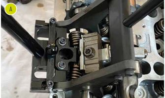- Montați unealta specială pe chiulasă și preîncărcați arcul de revenire (A)