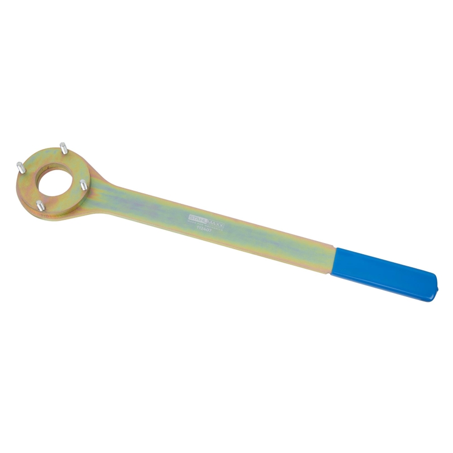 Această unealtă specializată este utilizată pentru blocarea arborelui cotit sau a amortizorului de vibrații în timpul lucrărilor de service.