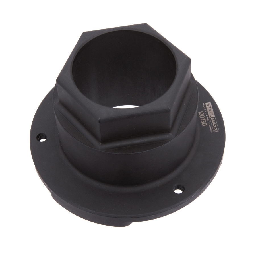 This adapter is designed for the removal of the crankshaft vibration damper on selected VAG engines. It enables safe and controlled disassembly during engine service procedures.